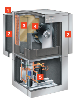 Тепловой насос Vitocal 350-A получает тепловую энергию из окружающей атмосферы. Даже в холодные дни тепловой насос Vitocal 350-A способен удовлетворить Вашу потребность в тепле.